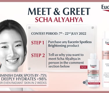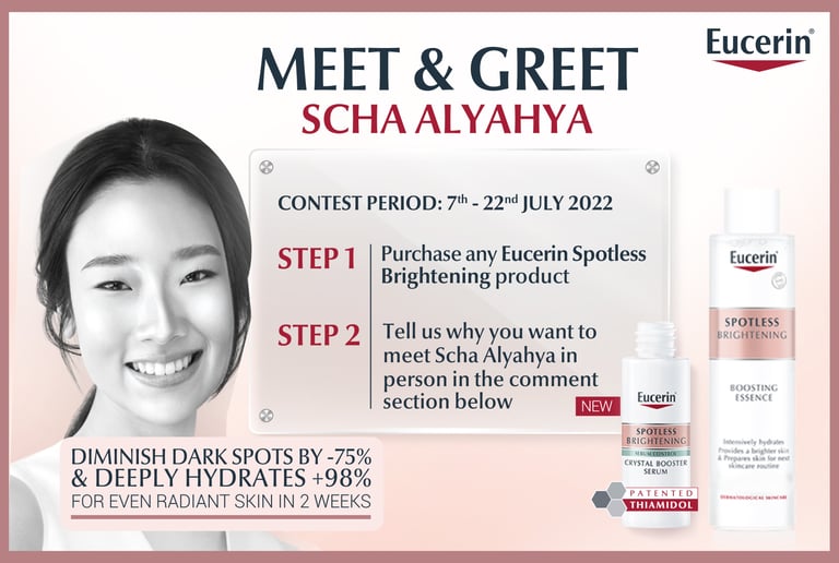 Eucerin's #PutAFullStopOnDarkSpots Campaign introduces a novel contest idea: by purchasing products and leaving comments, participants stand a chance to interact with Thai celebrity Scha Alyahya.