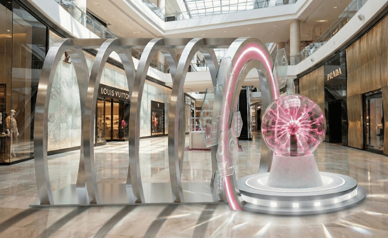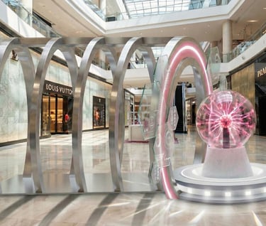 Essence element "Thiamidol Bubble". The idea of tunnels to represent a skin tunnel, when people walk in deeply they can reach the "Thiamidol Bubble" and people can take a photo with #PutAFullStopOnDarkSpots neon board.