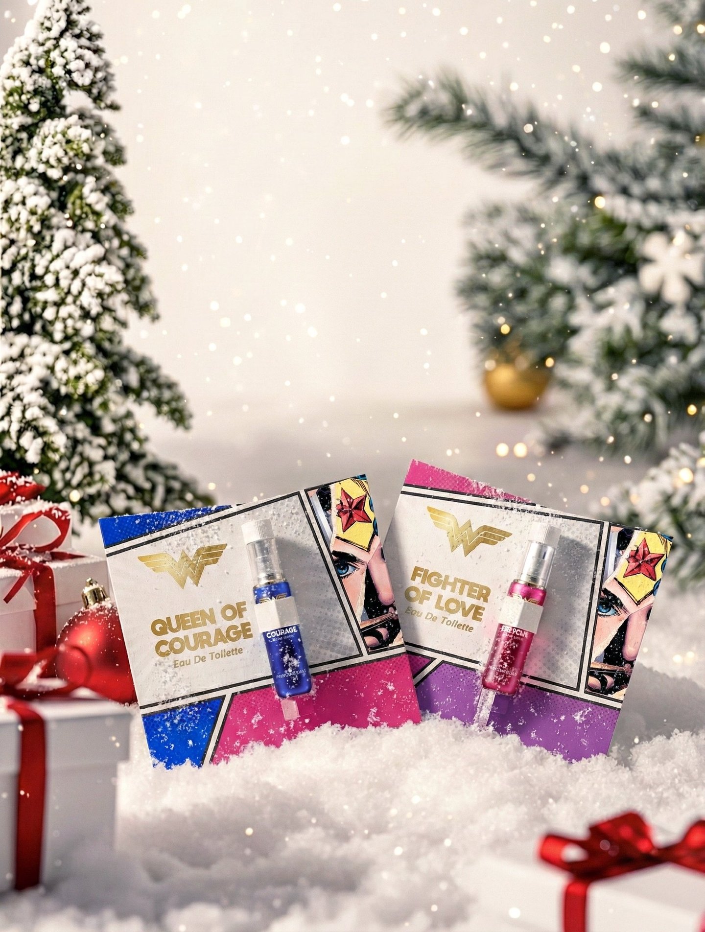The Enchanteur × Wonder Woman collection introduces two distinctive fragrances, each representing an empowering attitude. One channels boldness and courage, inspired by fearlessness and independence. The other embodies passion in love and life, expressing strength through emotion and connection. Together, they invite women to choose the energy that reflects who they are.